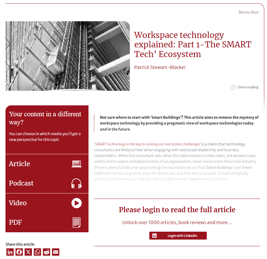 ↓ The exclusive 'Bento Box' feature detailed above is a curated collection of multimedia around a singular theme. It was reimagined to facilitate seamless navigation between varying content. Its name borrows from the Japanese meal boxes, allowing diverse flavor combinations, and humorously, the soy sauce fish embodies the name. From the homepage, the user can view the latest duo of bento boxes while more can be discovered through the button. Upon selecting a content piece, a frictionless, user-friendly presentation of all the multimedia selections is displayed. Users only need to log in via LinkedIn to gain complete access.